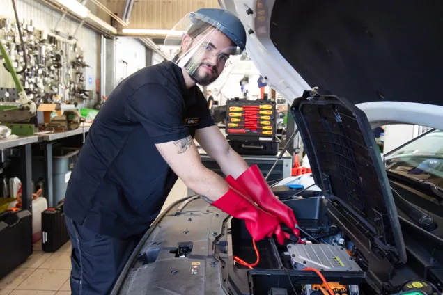 Wenn Sie ein Elektro- oder Hybridfahrzeug (aufladbar oder nicht) besitzen, können Sie es ohne Weiteres einer Unicar-Werkstatt für Wartungs- und Reparaturarbeiten anvertrauen – auch während der Garantiezeit des Fahrzeugs. Die Mitarbeiter der Unicar-Werkstätten absolvieren regelmässig Schulungen im Bereich der Hochvolttechnik und sind somit auf dem neuesten Stand. Sie sind in der Lage, verschiedene Wartungs- und Reparaturarbeiten an Hybrid- und Elektrofahrzeugen durchzuführen.